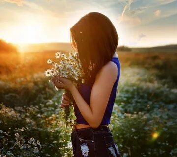 Скачать обои поле, лето, девушка, солнце, ромашки, профиль, раздел настроения в